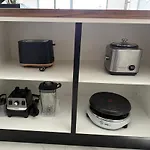 Los huéspedes tienen a su disposición un una zona de comedor, así como servicio de tetera/cafetera. Los huéspedes también pueden hacer uso de un hervidor eléctrico, una nevera y un horno para preparar su propia comida.